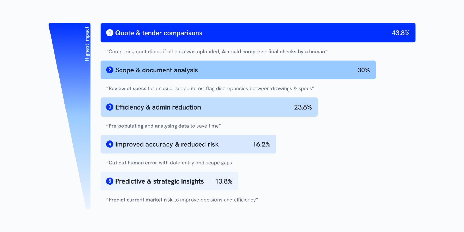 What it means: Contractors are focused on practical, everyday workflows - where AI can read, align and compare information to save time and reduce risk.